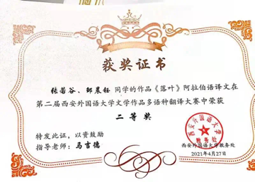 连续两年获得“西安外国语大学三好学生暨二等奖学金”