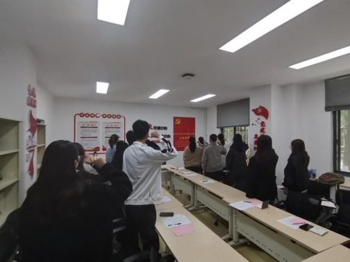 重温一次入党誓词,重忆入党初心。学生党员现场佩戴党员徽章,党员徽章戴在胸前,意味着心中有敬畏,肩上有责任,时刻提醒党员要牢记初心使命。全体党员在党支部书记的带领下,面对党旗、高举右手,重温入党誓词,“我志愿加入中国共产党,拥护党的纲领,遵守党的章程,履行党员义务,执行党的决定......”。铮铮誓言,传达出身为共产党员的自豪感和使命感,在场的每一位同志都接受了一次深刻的党性教育和灵魂洗礼。