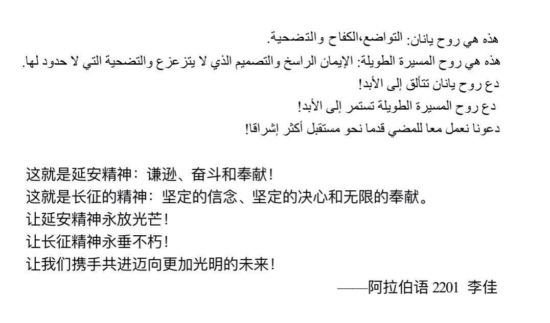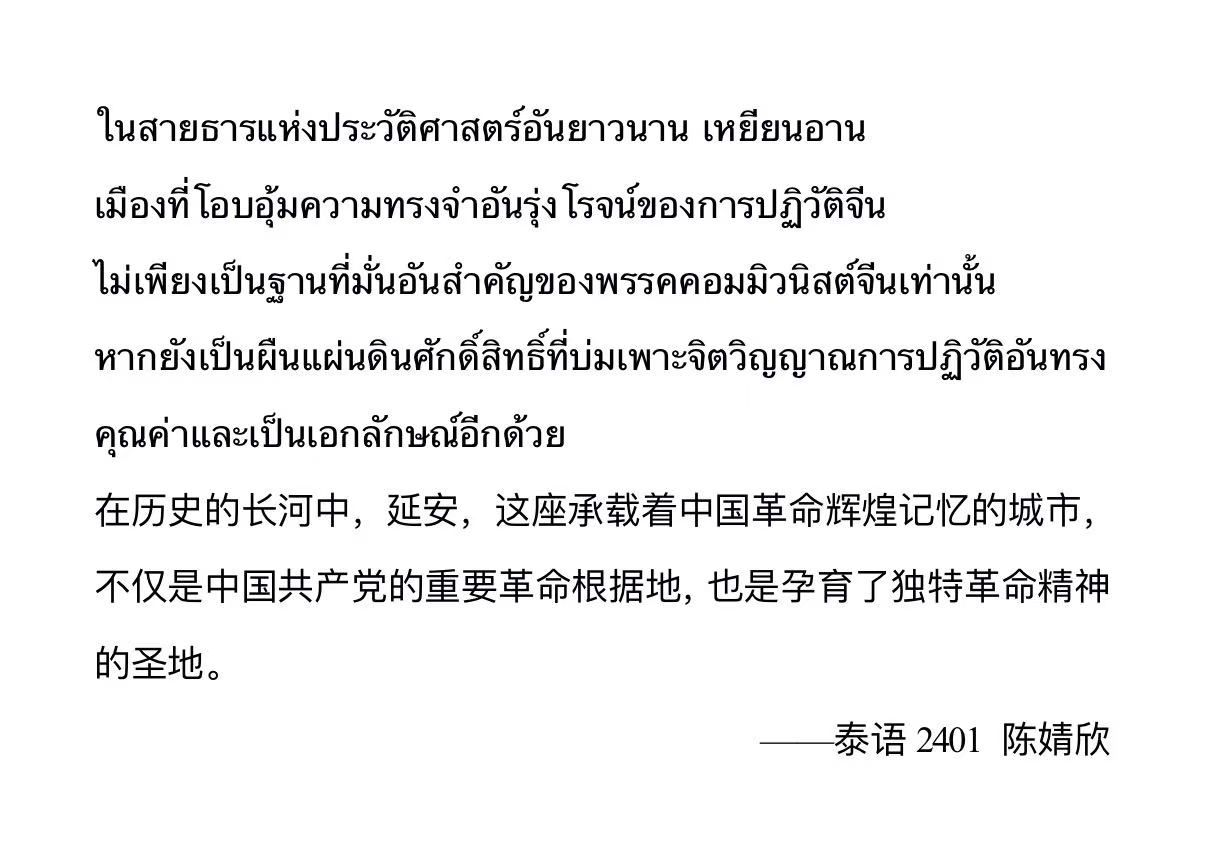 学生党支部将专业优势与红色教育深度融合,精心策划了多语种朗诵环节。在延安革命纪念馆前的广场上、宝塔山前,学生党员们分享学习感悟,用阿拉伯语、朝鲜语、泰语、乌尔都语等自己所学语种专业,深情朗诵赞颂党的光辉历程,讴歌延安精神时代价值。不同语言的韵律交织回荡在革命圣地,既有异域语言的独特魅力,更有对党的忠诚与热爱的共同表达。主题党日活动既展现了西外学子扎实的专业功底、开阔的国际视野,更让红色故事以多元形式 “活起来”,成为红色教育基地中一道充满青春气息的亮丽风景线。