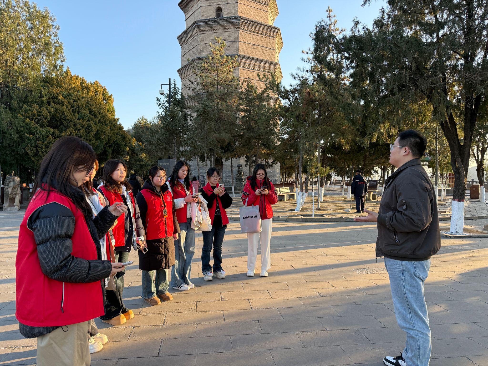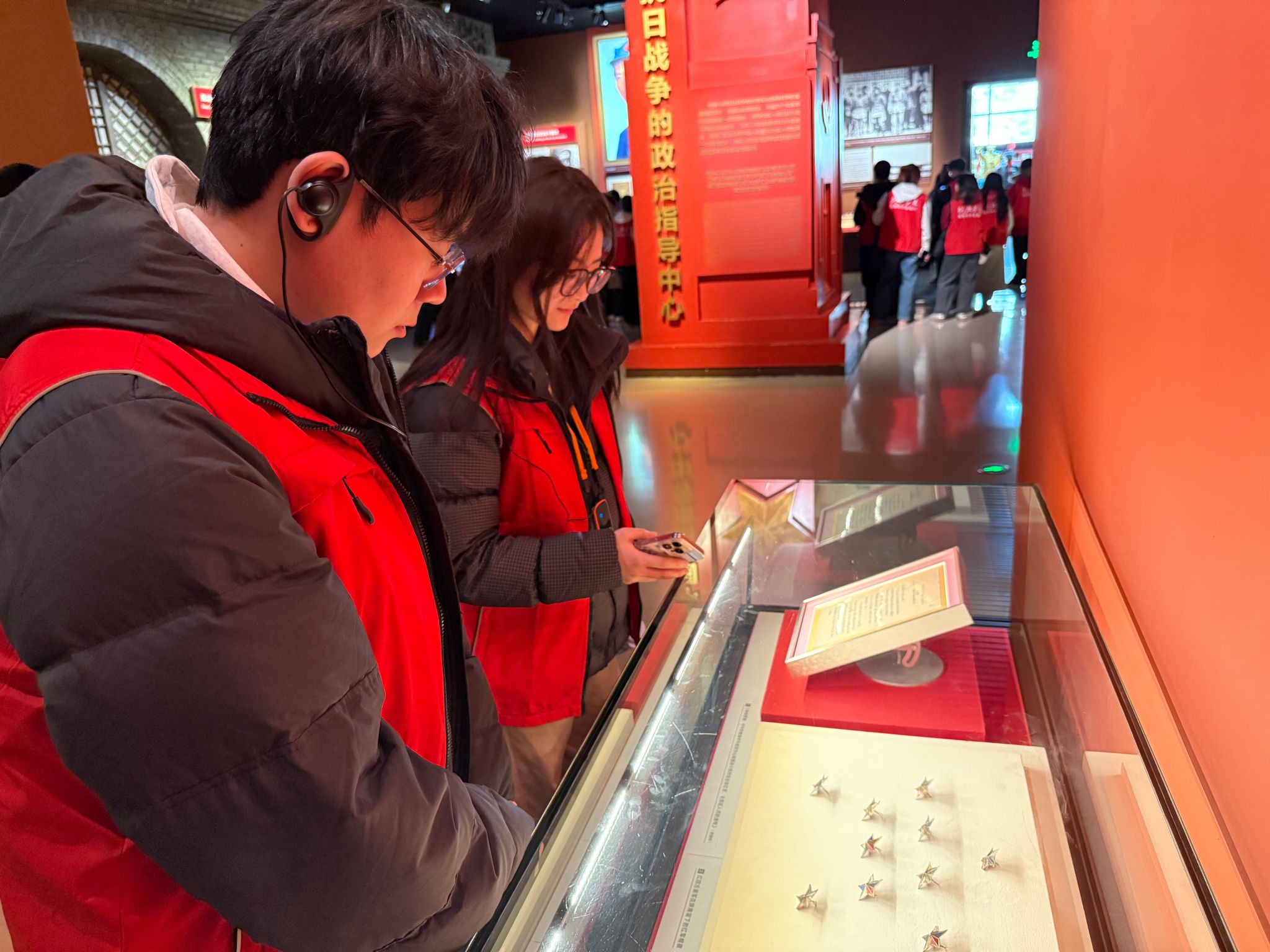 在延安革命纪念馆内,泛黄的史料、珍贵的文物、生动的雕塑,全景式再现了党中央在延安十三年的峥嵘岁月与辉煌成就。学生党员们紧随讲解员的步伐,时而驻足凝视,时而低声交流,在一张张照片、一件件实物前,深刻体悟 “坚定正确的政治方向、解放思想实事求是的思想路线、全心全意为人民服务的根本宗旨、自力更生艰苦奋斗的创业精神” 所凝聚的延安精神内核,让红色基因在沉浸式学习中融入血脉。徒步登上宝塔山,延安全城风貌尽收眼底,这座见证了中国革命历程的 “精神灯塔”,让同学们对先辈们的奋斗历程更添崇敬,爱国情怀与责任担当油然而生。
